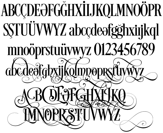 Bununçün, charmap programından vəya aşağıda izah olunan professional programlardan istifadə edə bilərsiniz. Xatırladım ki, fontun sonuna həm böyük, həm də kiçik "Ə" hərfləri üçün 5 ədəd variant əlavə edilib.